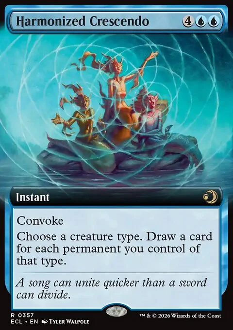 Convoke (Your creatures can help cast this spell. Each creature you tap while casting this spell pays for {1} or one mana of that creature's color.) Choose a creature type. Draw a card for each permanent you control of that type.