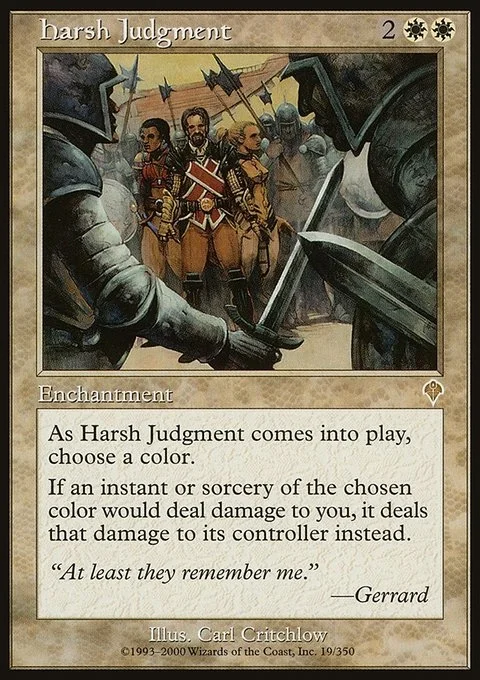 If an instant or sorcery of the chosen color would deal damage to you, it deals that damage to its controller instead.