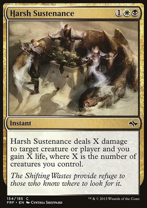 Harsh Sustenance deals X damage to any target and you gain X life, where X is the number of creatures you control.