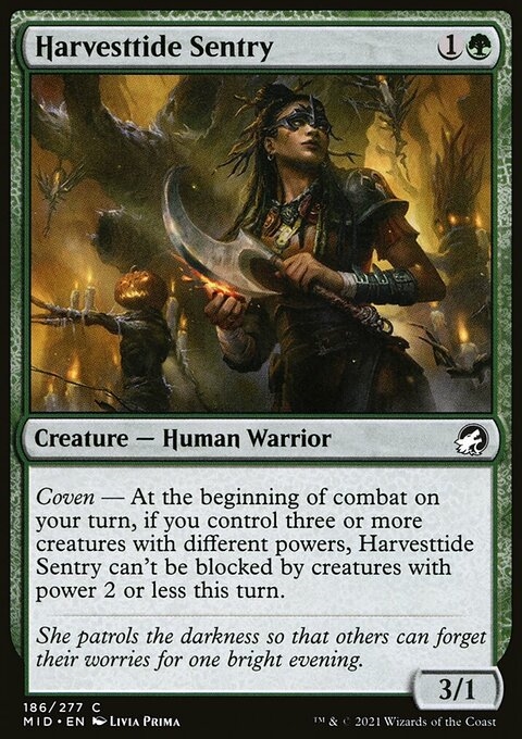 Coven — At the beginning of combat on your turn, if you control three or more creatures with different powers, this creature can't be blocked by creatures with power 2 or less this turn.