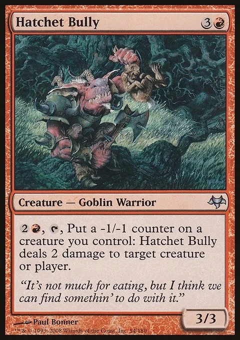 {2}{R}, {T}, Put a -1/-1 counter on a creature you control: Hatchet Bully deals 2 damage to any target.
