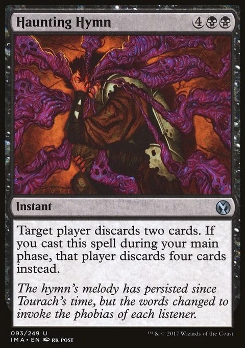 Target player discards two cards. If you cast this spell during your main phase, that player discards four cards instead.