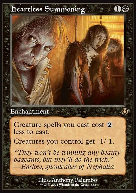 Creature spells you cast cost {2} less to cast. Creatures you control get -1/-1.