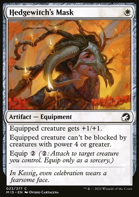 Equipped creature gets +1/+1. Equipped creature can't be blocked by creatures with power 4 or greater. Equip {2} ({2}: Attach to target creature you control. Equip only as a sorcery.)