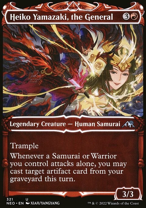 Trample Whenever a Samurai or Warrior you control attacks alone, you may cast target artifact card from your graveyard this turn.