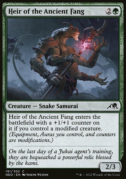 This creature enters with a +1/+1 counter on it if you control a modified creature. (Equipment, Auras you control, and counters are modifications.)