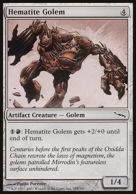 {1}{R}: Hematite Golem gets +2/+0 until end of turn.