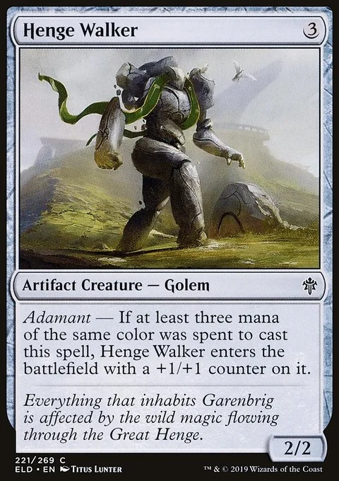 Adamant — If at least three mana of the same color was spent to cast this spell, Henge Walker enters the battlefield with a +1/+1 counter on it.