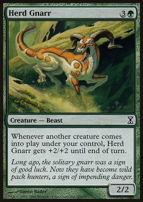 Whenever another creature you control enters, Herd Gnarr gets +2/+2 until end of turn.