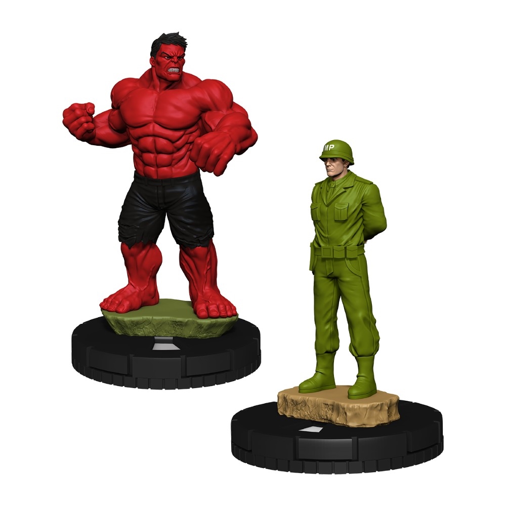 Red Hulk is a musclebound menace, and he's got help from the Los Diablos MP! Have them face off or team up like never before in this HeroClix set!