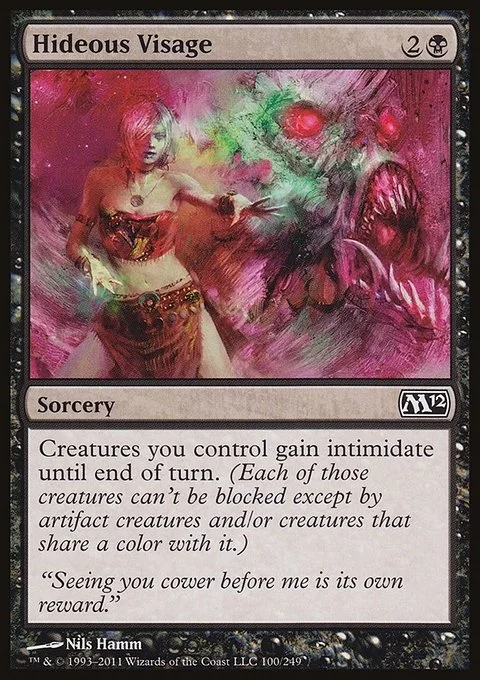 Creatures you control gain intimidate until end of turn. (Each of those creatures can't be blocked except by artifact creatures and/or creatures that share a color with it.)