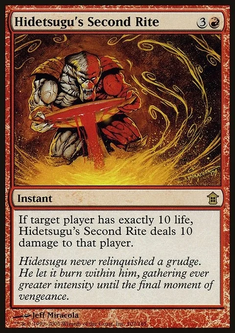 If target player has exactly 10 life, Hidetsugu's Second Rite deals 10 damage to that player.