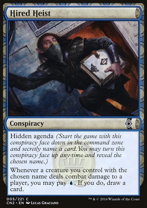 Hidden agenda (Start the game with this conspiracy face down in the command zone and secretly choose a card name. You may turn this conspiracy face up any time and reveal that name.)