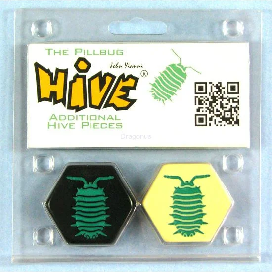 Hive: The Pillbug is a new pair of tiles that can be added to Hive. The pillbug moves like the queen bee—one space at a time—but it also has a special ability that it may use instead of moving. This ability allows the pillbug to move an adjacent unstacked piece (whether friendly or enemy) two spaces: up onto the pillbug itself, then down into another empty space adjacent to itself. Some exceptions for this ability: