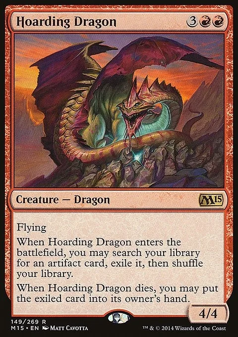 When Hoarding Dragon enters the battlefield, you may search your library for an artifact card, exile it, then shuffle your library.