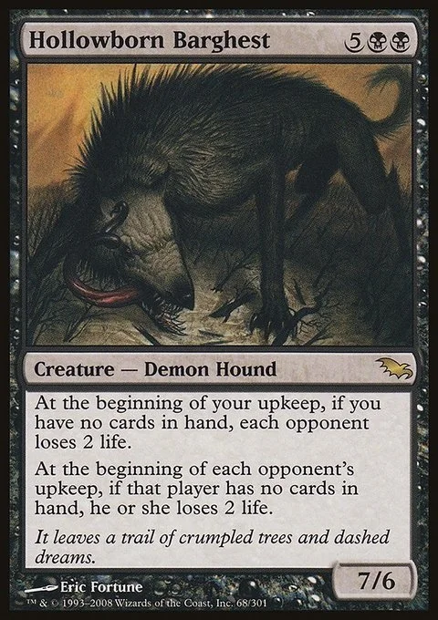 At the beginning of your upkeep, if you have no cards in hand, each opponent loses 2 life.