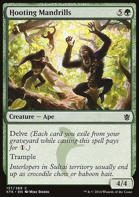 Delve (Each card you exile from your graveyard while casting this spell pays for {1}.) Trample