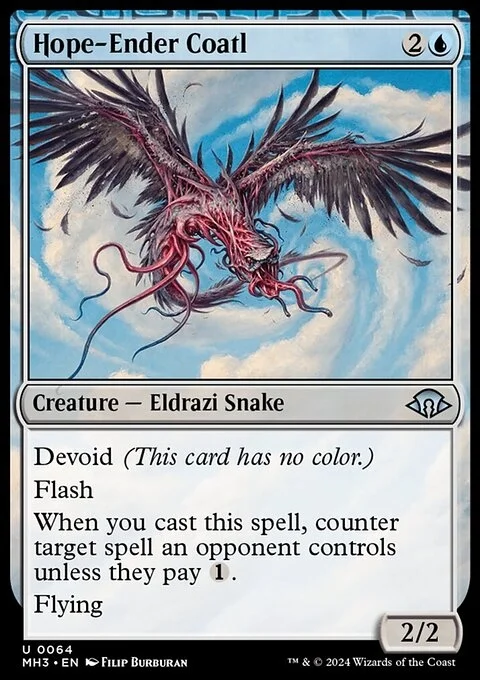 Devoid (This card has no color.) Flash When you cast this spell, counter target spell an opponent controls unless they pay {1}. Flying