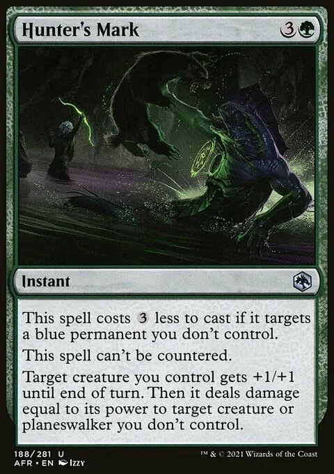This spell costs {3} less to cast if it targets a blue permanent you don't control. This spell can't be countered. Target creature you control gets +1/+1 until end of turn. Then it deals damage equal to its power to target creature or planeswalker you don't control.
