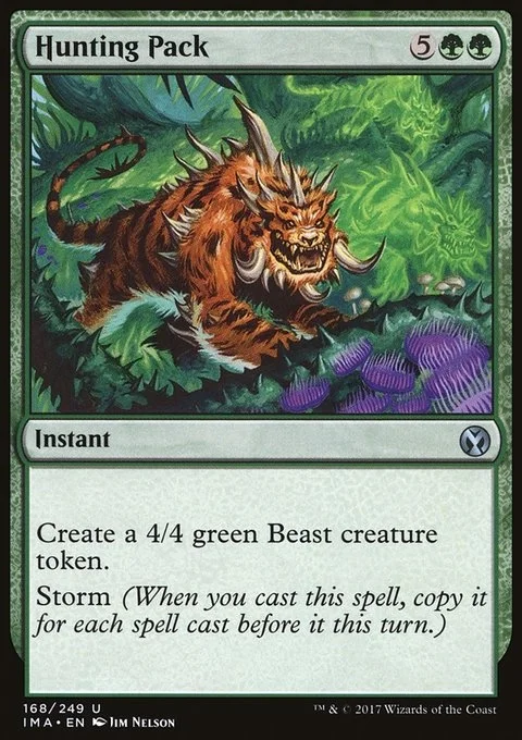 Create a 4/4 green Beast creature token. Storm (When you cast this spell, copy it for each spell cast before it this turn.)