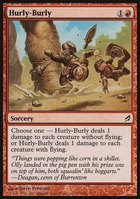 Choose one — • Hurly-Burly deals 1 damage to each creature without flying. • Hurly-Burly deals 1 damage to each creature with flying.