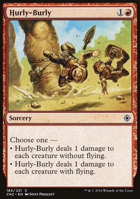 Choose one — • Hurly-Burly deals 1 damage to each creature without flying. • Hurly-Burly deals 1 damage to each creature with flying.