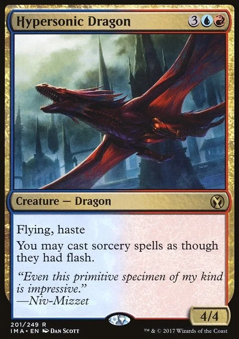 Flying, haste You may cast sorcery spells as though they had flash. (You may cast them any time you could cast an instant.)