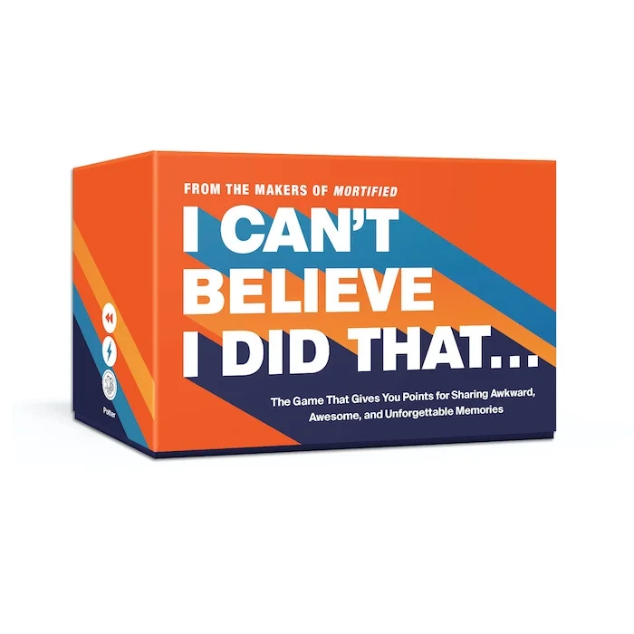 I Can't Believe I Did That... is a party game that is an exercise in both empathy and hilarity, bringing friends together to laugh (or cry!) at steamy high school hook-ups, questionable fashion choices, and sobbing at your first middle school dance. With conversation prompts that spark memories of your most heartwarming, confusing, and totally OMG-worthy moments, this game is perfect for busting through the awkwardness of getting-to-know-you at freshman orientation, book club, or even to pre-game a night on the town.