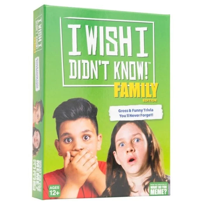 Family-friendly trivia game! Test your knowledge about all things weird, off-beat, funny, and gross. Topics include poop, farts, burps, germs, relationships, and amazing world records. After playing, we guarantee you’ll be saying “I Wish I Didn’t Know!"