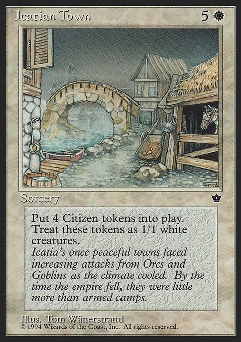 Put 4 Citizen tokens into play. Treat these tokens as 1/1 white creatures.