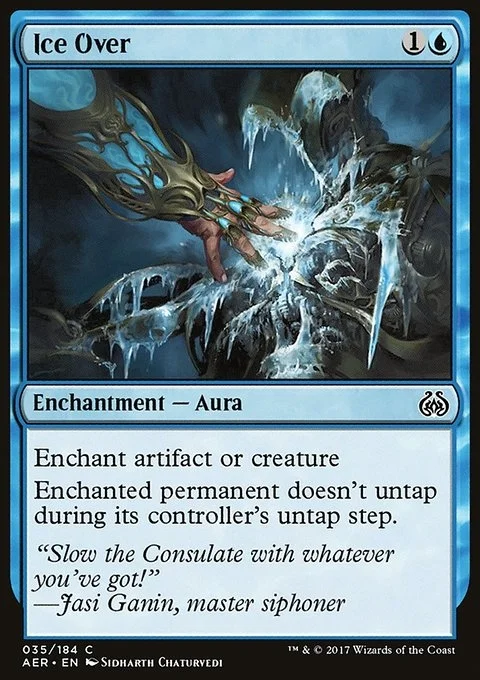 Enchant artifact or creature Enchanted permanent doesn't untap during its controller's untap step.