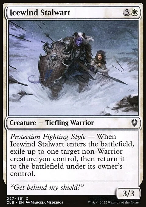 Protection Fighting Style — When this creature enters, exile up to one target non-Warrior creature you control, then return it to the battlefield under its owner's control.