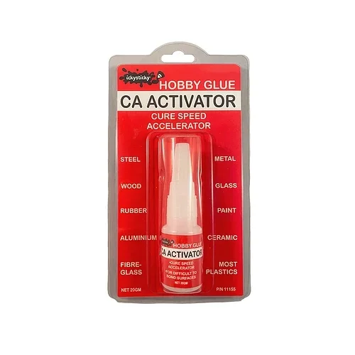 ICKYSTICKY CA Activator is a single component, solvent based surface accelerator designed to increase the speed cure of ICKYSTICKY range of CA HOBBY GLUES