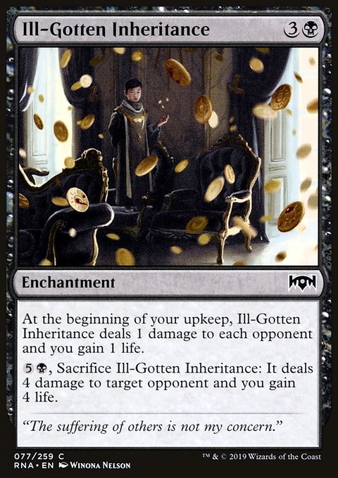 At the beginning of your upkeep, this enchantment deals 1 damage to each opponent and you gain 1 life. {5}{B}, Sacrifice this enchantment: It deals 4 damage to target opponent and you gain 4 life.