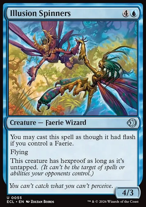 You may cast this spell as though it had flash if you control a Faerie. Flying This creature has hexproof as long as it's untapped. (It can't be the target of spells or abilities your opponents control.)