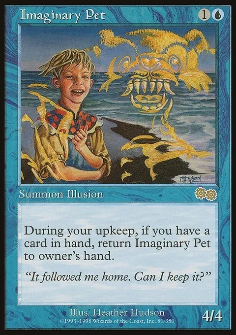 During your upkeep, if you have a card in hand, return Imaginary Pet to owner’s hand.