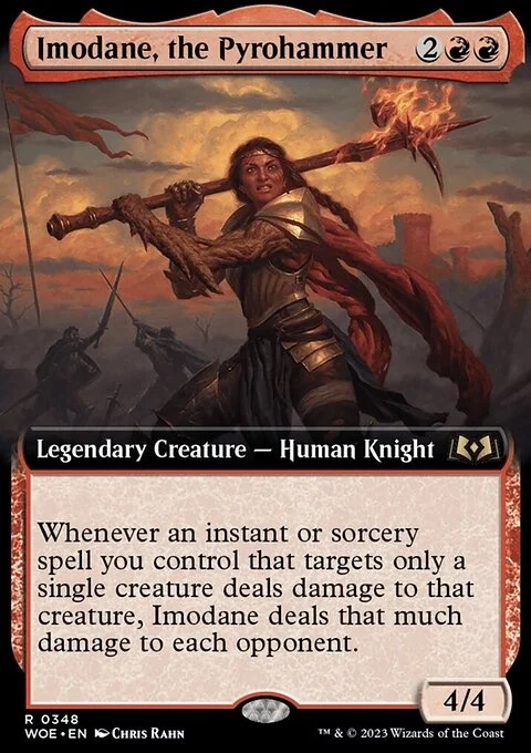 Whenever an instant or sorcery spell you control that targets only a single creature deals damage to that creature, Imodane deals that much damage to each opponent.