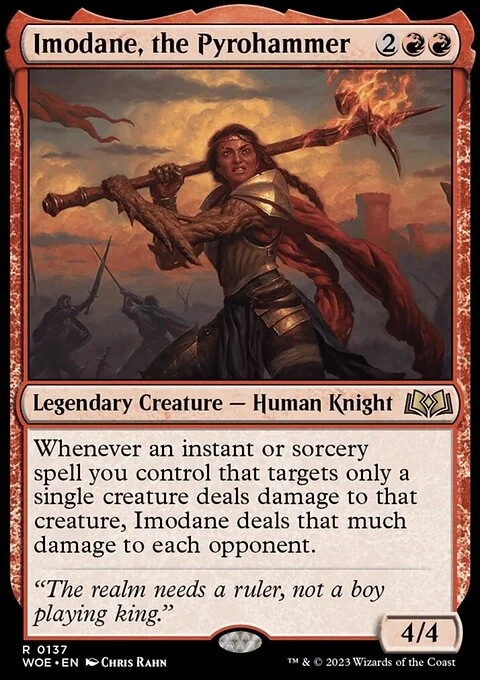Whenever an instant or sorcery spell you control that targets only a single creature deals damage to that creature, Imodane deals that much damage to each opponent.