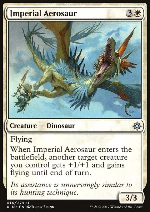 Flying When Imperial Aerosaur enters the battlefield, another target creature you control gets +1/+1 and gains flying until end of turn.
