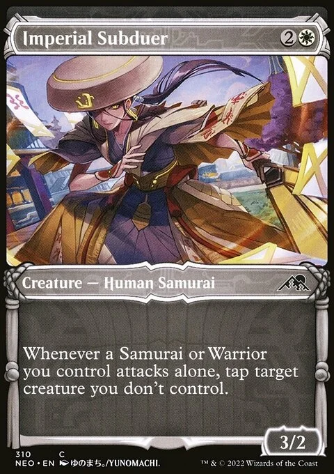 Whenever a Samurai or Warrior you control attacks alone, tap target creature you don't control.