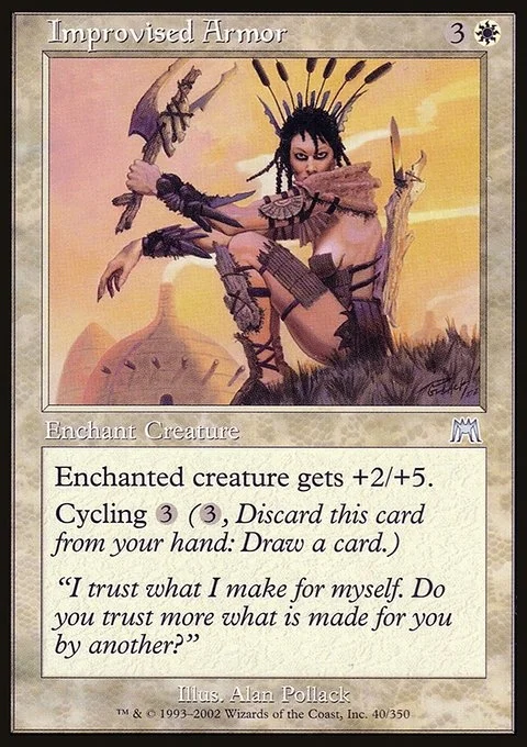 Enchant creature Enchanted creature gets +2/+5. Cycling {3} ({3}, Discard this card: Draw a card.)