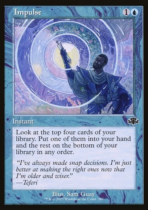 Look at the top four cards of your library. Put one of them into your hand and the rest on the bottom of your library in any order.
