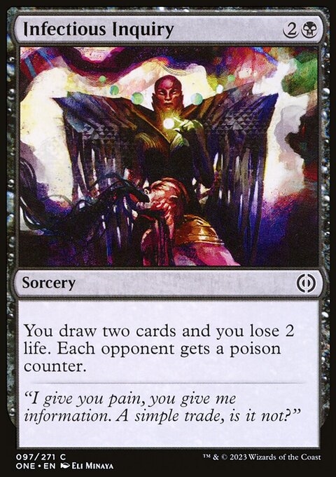 You draw two cards and you lose 2 life. Each opponent gets a poison counter.