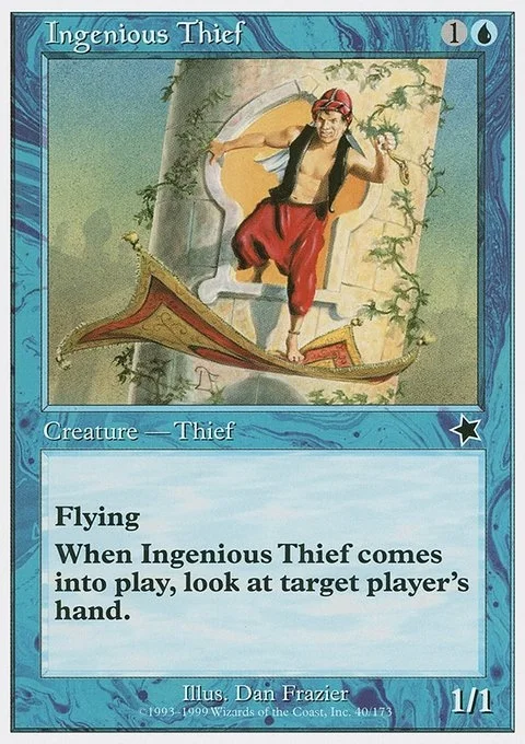 Flying When Ingenious Thief enters the battlefield, look at target player's hand.