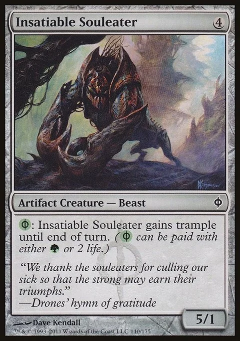 {G/P}: Insatiable Souleater gains trample until end of turn. ({G/P} can be paid with either {G} or 2 life.)