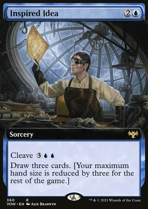 Cleave {3}{U}{U} (You may cast this spell for its cleave cost. If you do, remove the words in square brackets.) Draw three cards. [Your maximum hand size is reduced by three for the rest of the game.]
