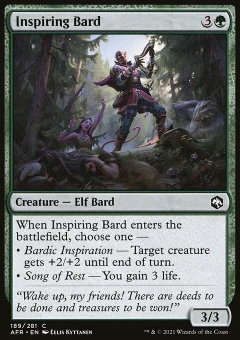 When Inspiring Bard enters the battlefield, choose one — • Bardic Inspiration — Target creature gets +2/+2 until end of turn. • Song of Rest — You gain 3 life.