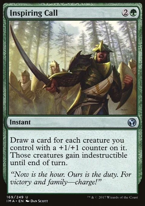 Draw a card for each creature you control with a +1/+1 counter on it. Those creatures gain indestructible until end of turn.