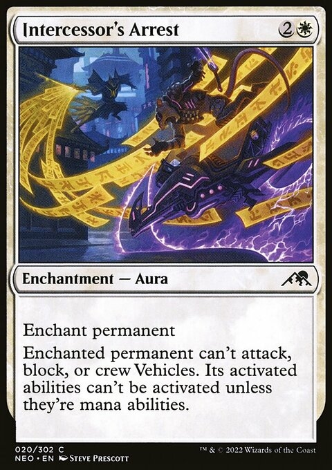 Enchant permanent Enchanted permanent can't attack, block, or crew Vehicles. Its activated abilities can't be activated unless they're mana abilities.