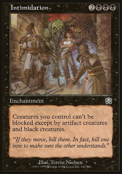 Creatures you control have fear. (They can't be blocked except by artifact creatures and/or black creatures.)